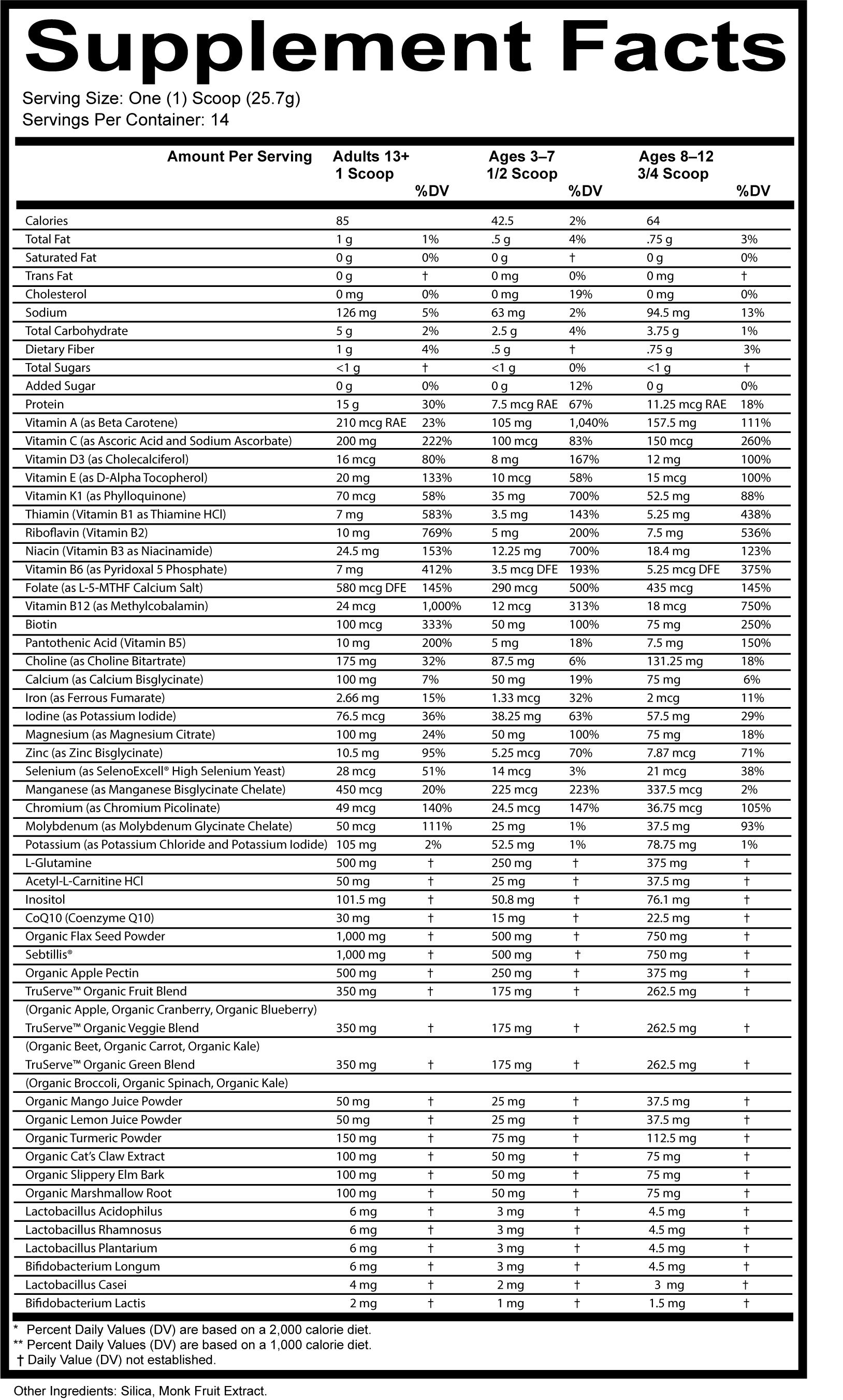- Ages 13+ 1 scoop (with 8oz liquid)