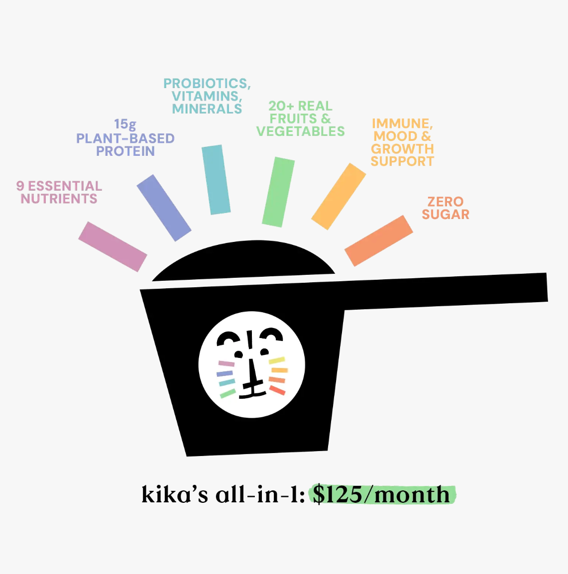- Gut Blend + Fiber: improves nutrient absorption & regularity